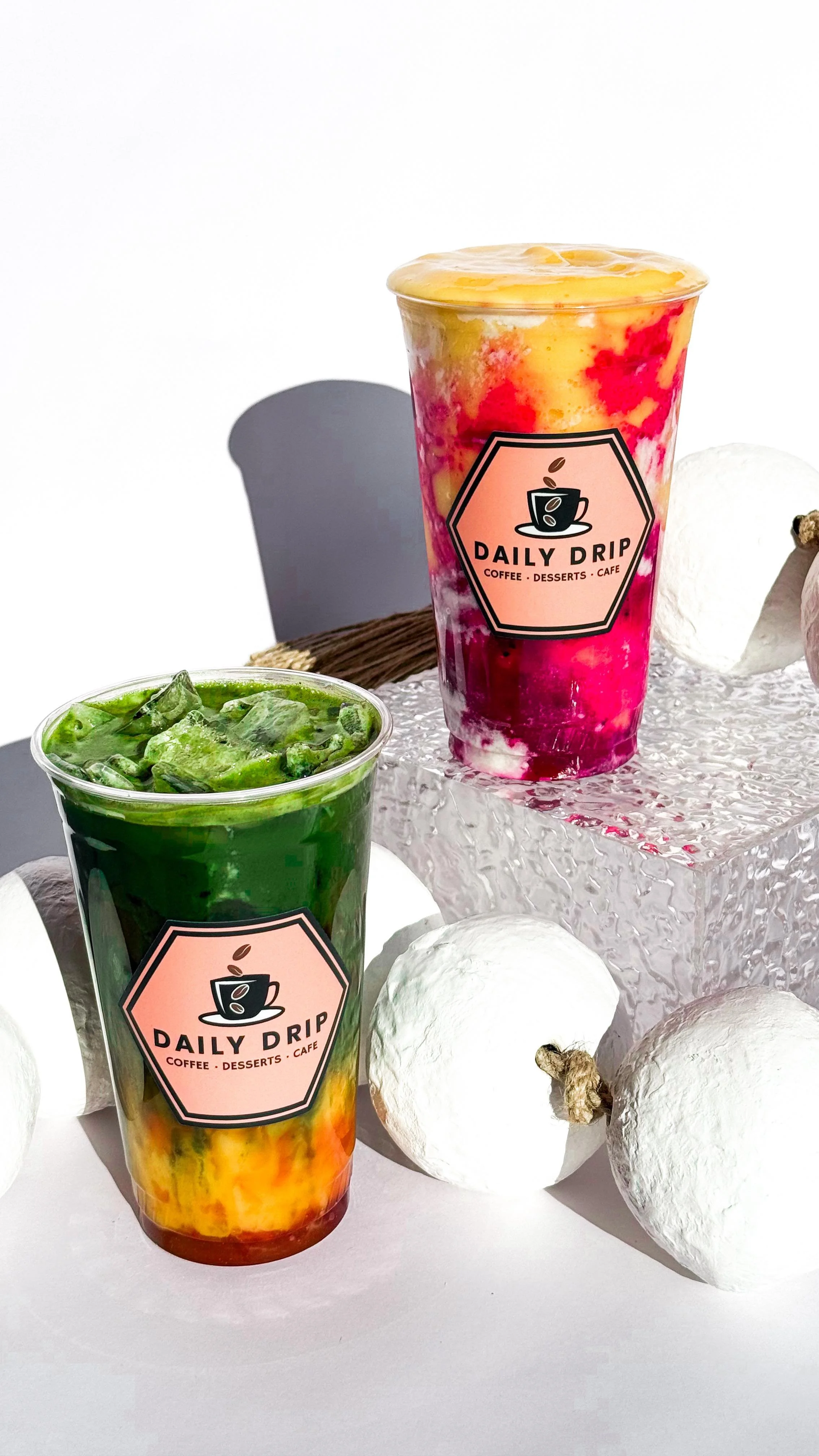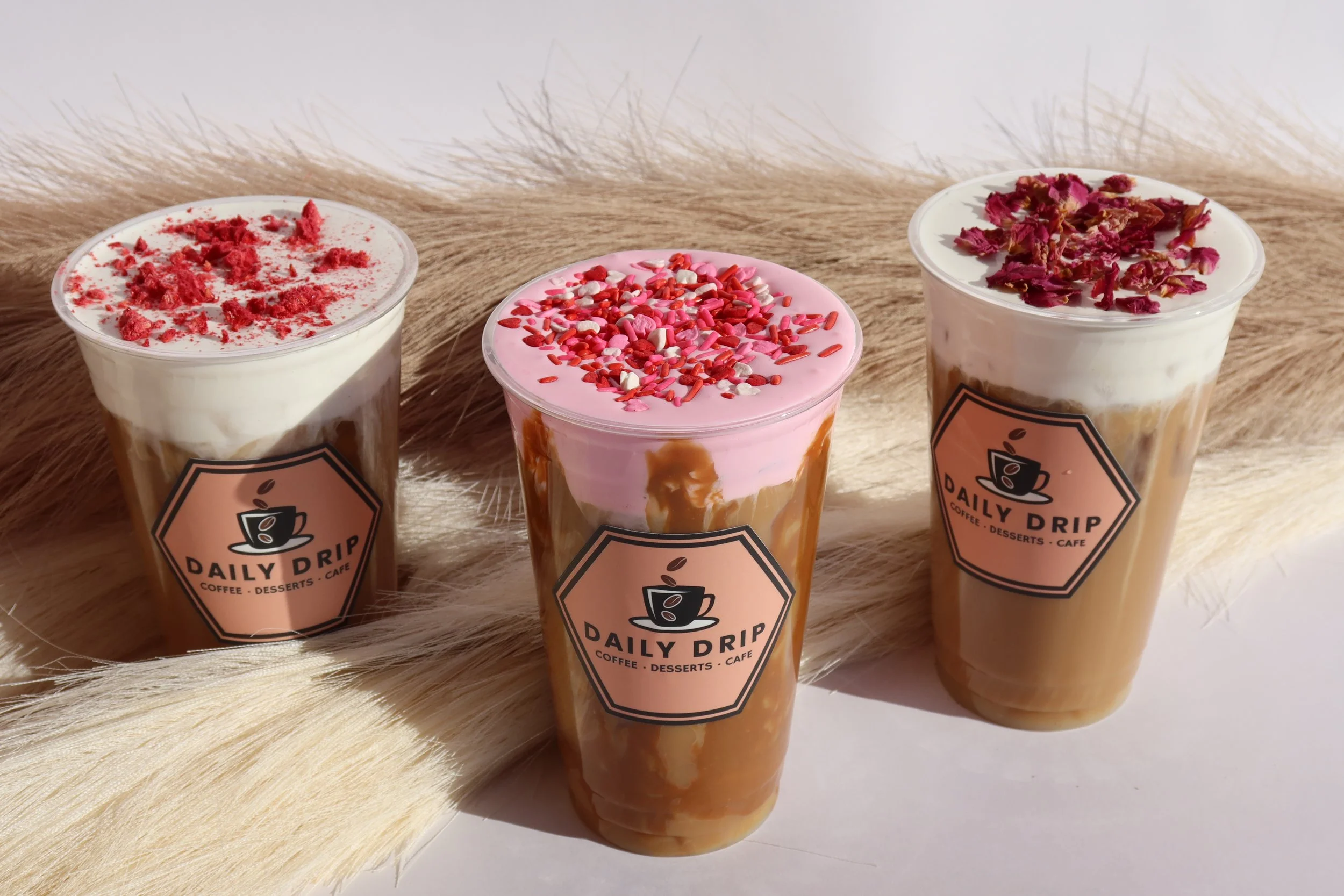 Our unique & personalized creations promises to level up your coffee break with a memorable sip each time! Create your own designed latte at any Daily Drip location!