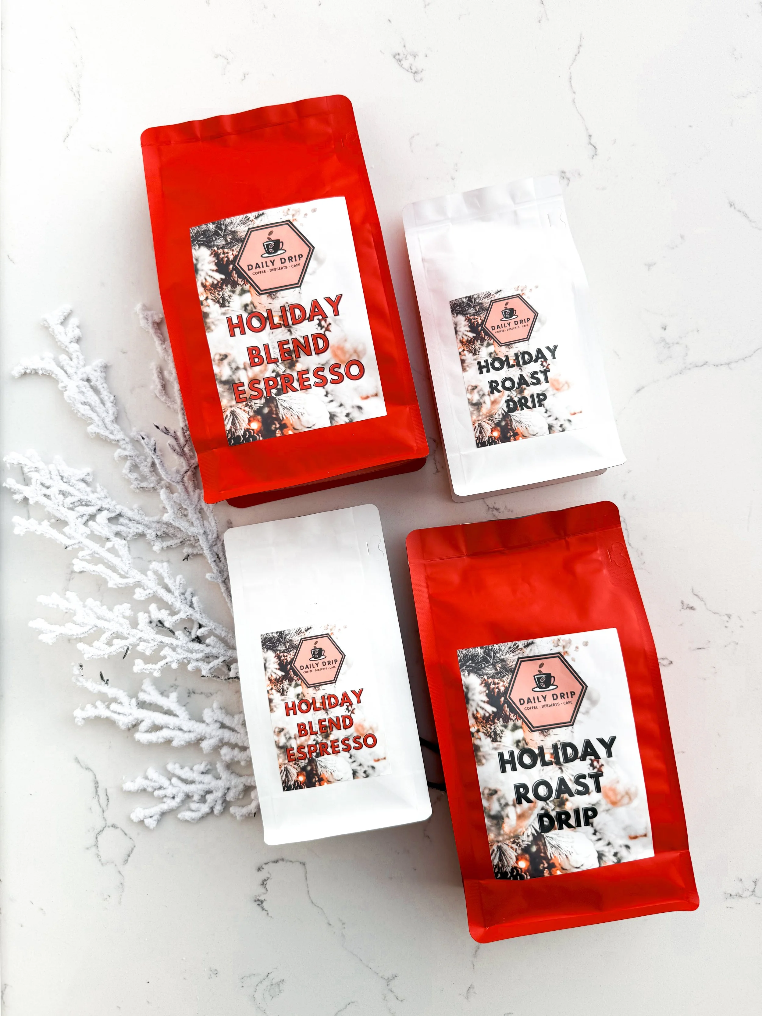 Embrace the festive season with our Daily Drip Holiday Roast Drip Coffee Bag. Each bag delivers a festive brew perfect for your holiday moments with our limited-edition blend crafted to capture the warmth & joy of the holidays. The limited edition Daily Drip Holiday espresso beans have a smooth, balanced profile that ensures rich flavors for a wide variety of palettes and taste buds. Experience tasting notes of syrup sweetness, soft citrus & fruit notes, caramel, holiday spice, and hints of toasted pecans with a medium roast originating from Central America & Africa. The Daily Drip espresso beans are locally roasted in small batches, capturing the flavor profiles and sealed in a resealable bag to preserve freshness ensuring that each cup of coffee is flavorful.